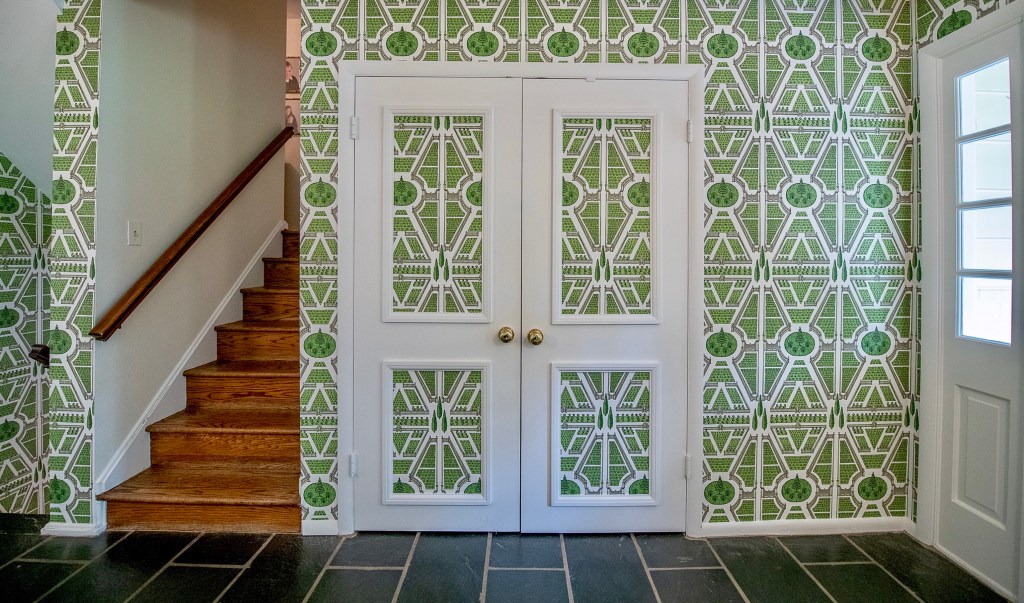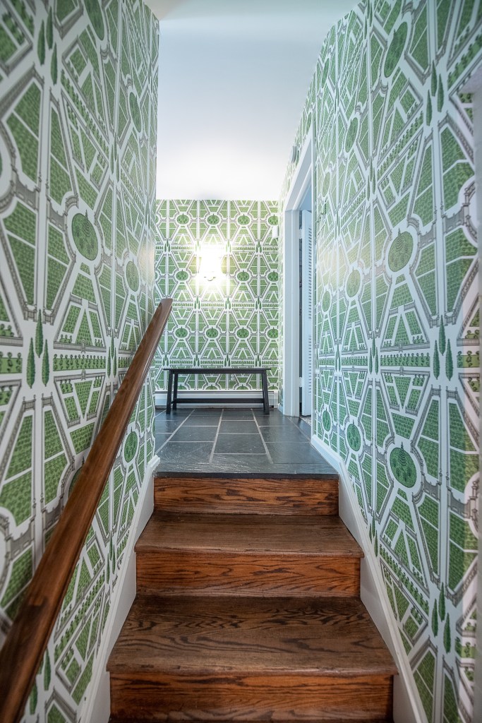 This project was so much fun and I couldn’t be happier with how it turned out. My client wanted to make a statement in her foyer that tied into the rest of the first floor. Wallpaper is the way to add interest to any room.