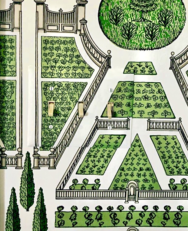 As travelers, this garden landscape was a reminder of places they had visited and as their designer, I felt the geometry and color made this foyer into a proper introduction to their home.
