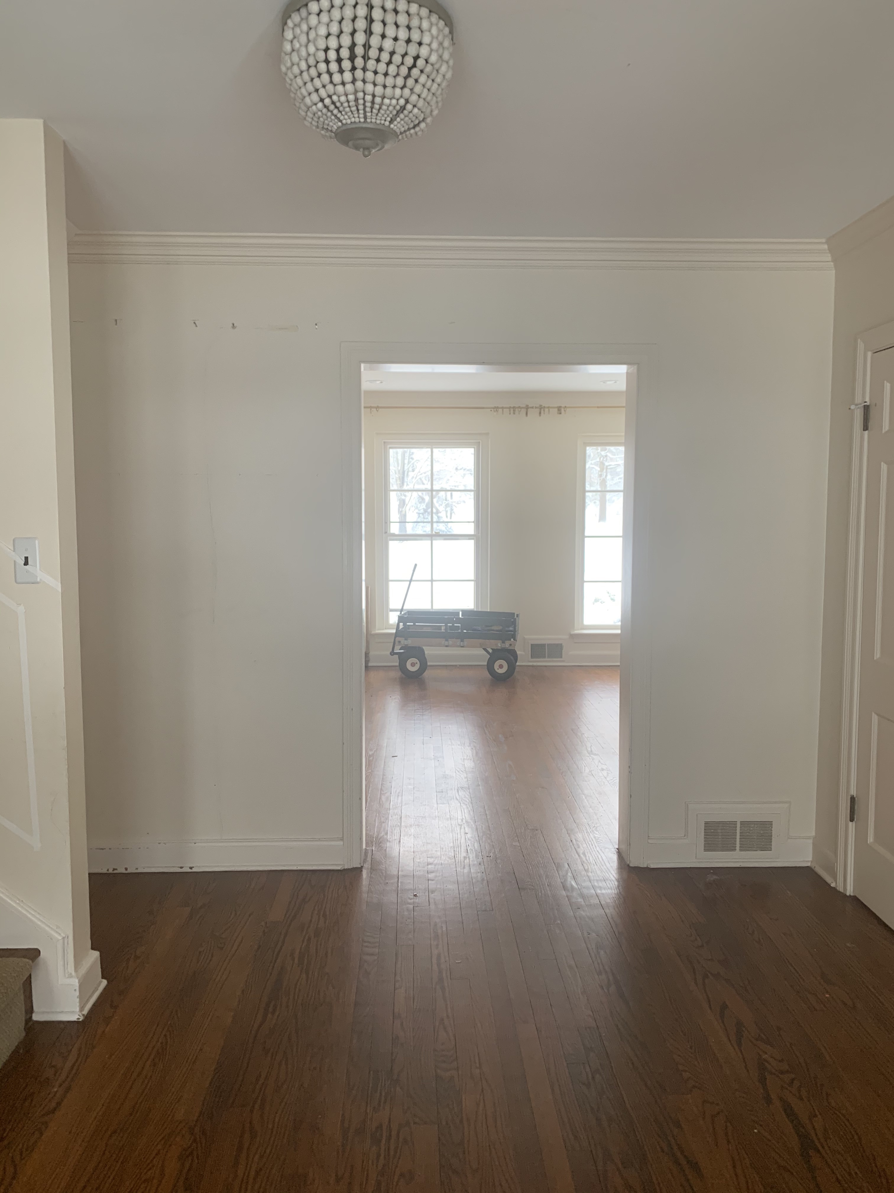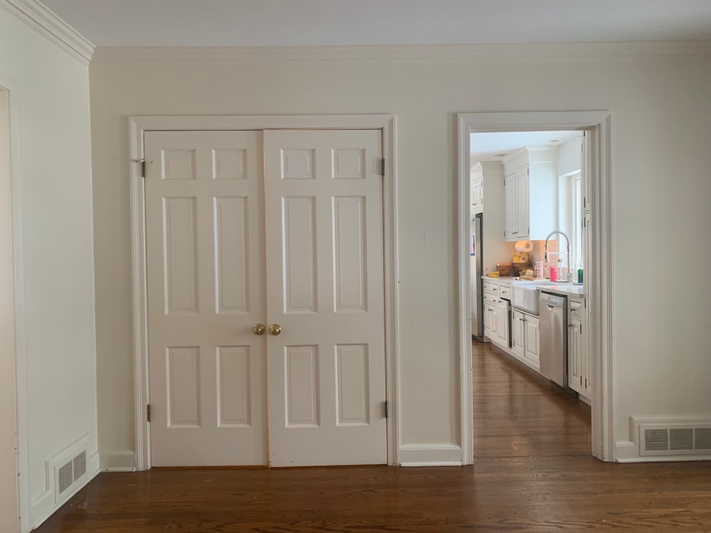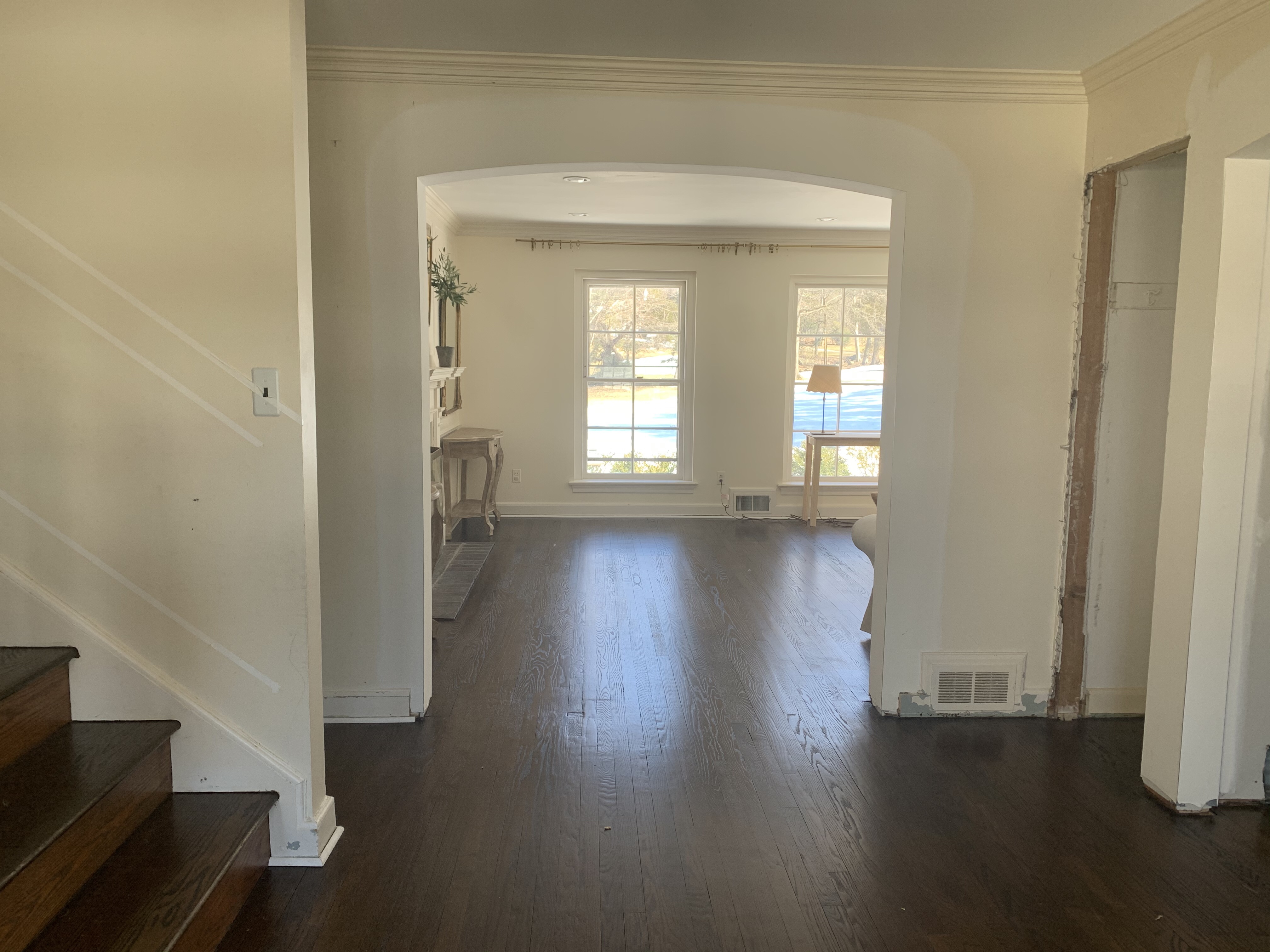First on the agenda, was to shrink the width of the existing coat closet in order to open up the entrance to the kitchen. This move enabled a six foot, cased, arched opening into the kitchen as well as each adjacent room throughout. Larger arched openings created a softer transition between rooms and allowed much needed light to flood the Foyer, like never before.
