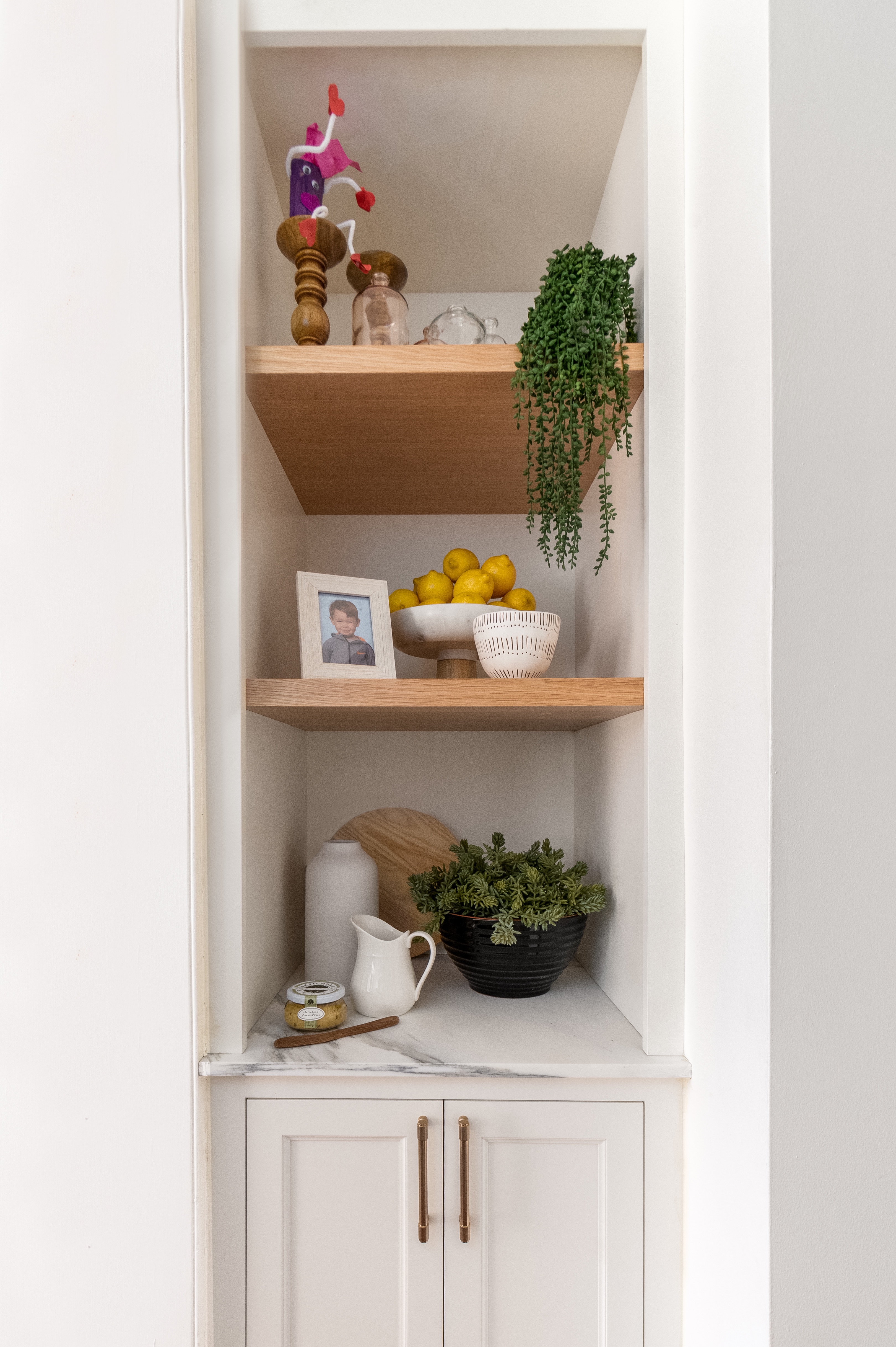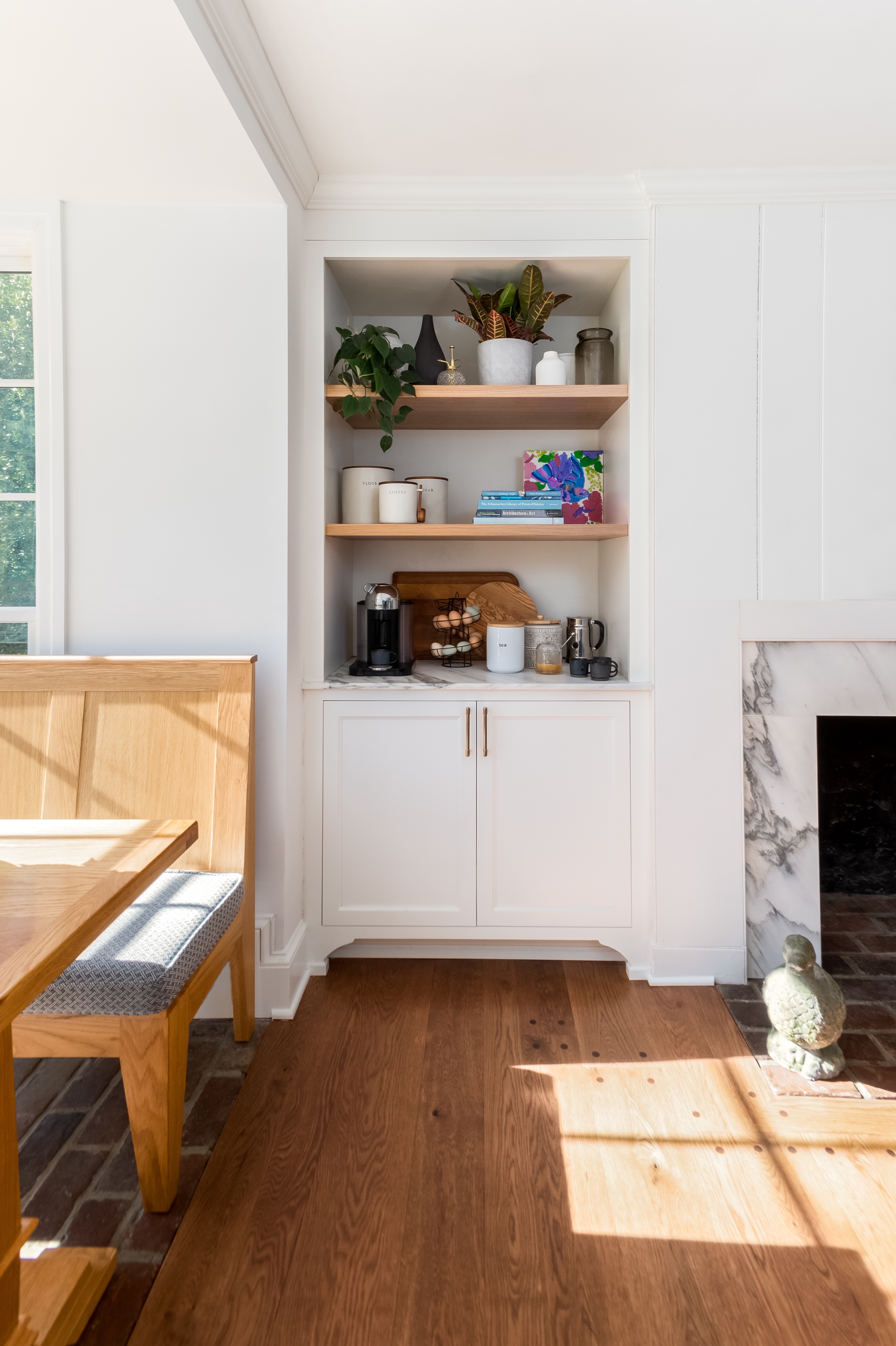 The breakfast nook was a key feature of the kitchen that required careful attention. While adding base cabinetry and raising the sill height would have provided additional storage, it would have significantly reduced the natural light. Instead, we opted to replace the floor-to-ceiling windows and designed a custom white oak banquette, adding both functionality and extra seating without compromising the light-filled space