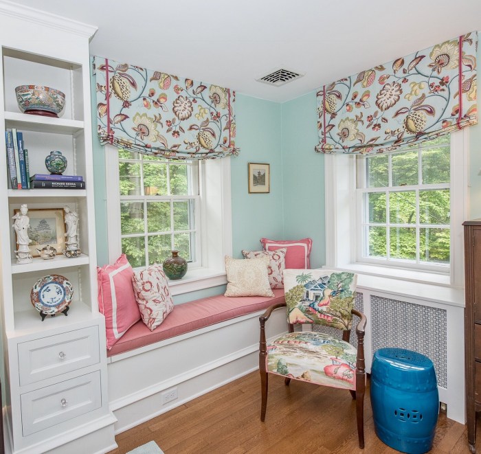 Before moving in. Laying out the pattern on this tricky area under the stairs. Lookin good going up. First coat of paint. Now you see them….. Now you don’t. This custom built banquette was designed to fit perfectly around this low window sill. It’s also upholstered in a performance leather for easy cleaning. Professional photography … Continue reading Hear No Evil, See No Evil, Speak No Evil, in these beautifully saturated spaces.